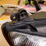 The result, although not pretty was perfectly functional. It’s not on show, hidden by the fairing and plenty strong enough to mount the fairing to light cluster and in turn lights to brackets. The buried staples and built up plastic provide a good deal of strength. Overall a cheap and easy way to repair expensive plastic parts.