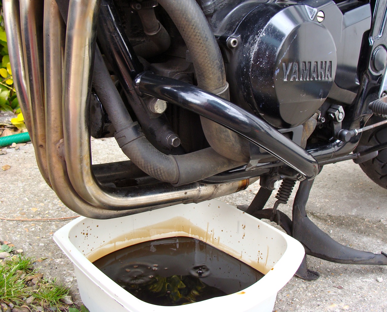Acids are produced in the oil when the bike is in use, and this can cause damage to the inner metal surfaces. For this reason, it’s always a good idea to freshen up the oil before a spell of prolonged inactivity. Add fresh motorcycle oil – preferably a winter grade (5w30) – and dispose of the old oil responsibly.