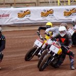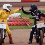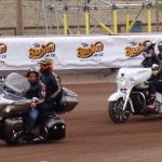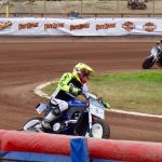 It was good to see Jenny Tinmouth racing too, who was bloody fast and only beaten in the Inappropriate Road Bike category by Vinnie Snell on an R1 with NOx who was a dab hand at drifting. Also on the celeb front, we were entertained by Jenny putting a new Indian Scout FTR bike through it’s paces, before Gary Birtwistle won it after winning the Hooligan class. Neil Hodgson and Steve Parish kept the smiles going by ragging a pair of Indian Road Master Behemoths around the dirt!