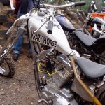 The scooter category was definitely one of the more entertaining races pitting globe trotting C90’s against big maxi-scooters, Vespa and pizza delivery mopeds. Hats off the chap in full business suit and brief case. The chopper category was equally entertaining with custom bikes with crazy raked out forks trying to drift on dirt… It’s a wonder they got round at all! Even Guy Martin racing a mental Krazy Horse chopper struggled, dropping it in practice.