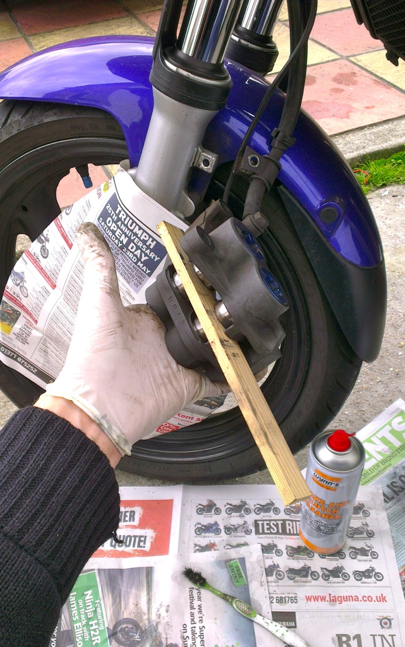 The front brake on our CBF500 had been feeling a bit spongy since we bought it, and just didn’t inspire much confidence. At first, we dismissed the poor stopping power due to a single disc and two two-pot calliper with some basic organic pads in. But no, it was most definitely spongy with either old fluid, air in the system or duff rubber hose.